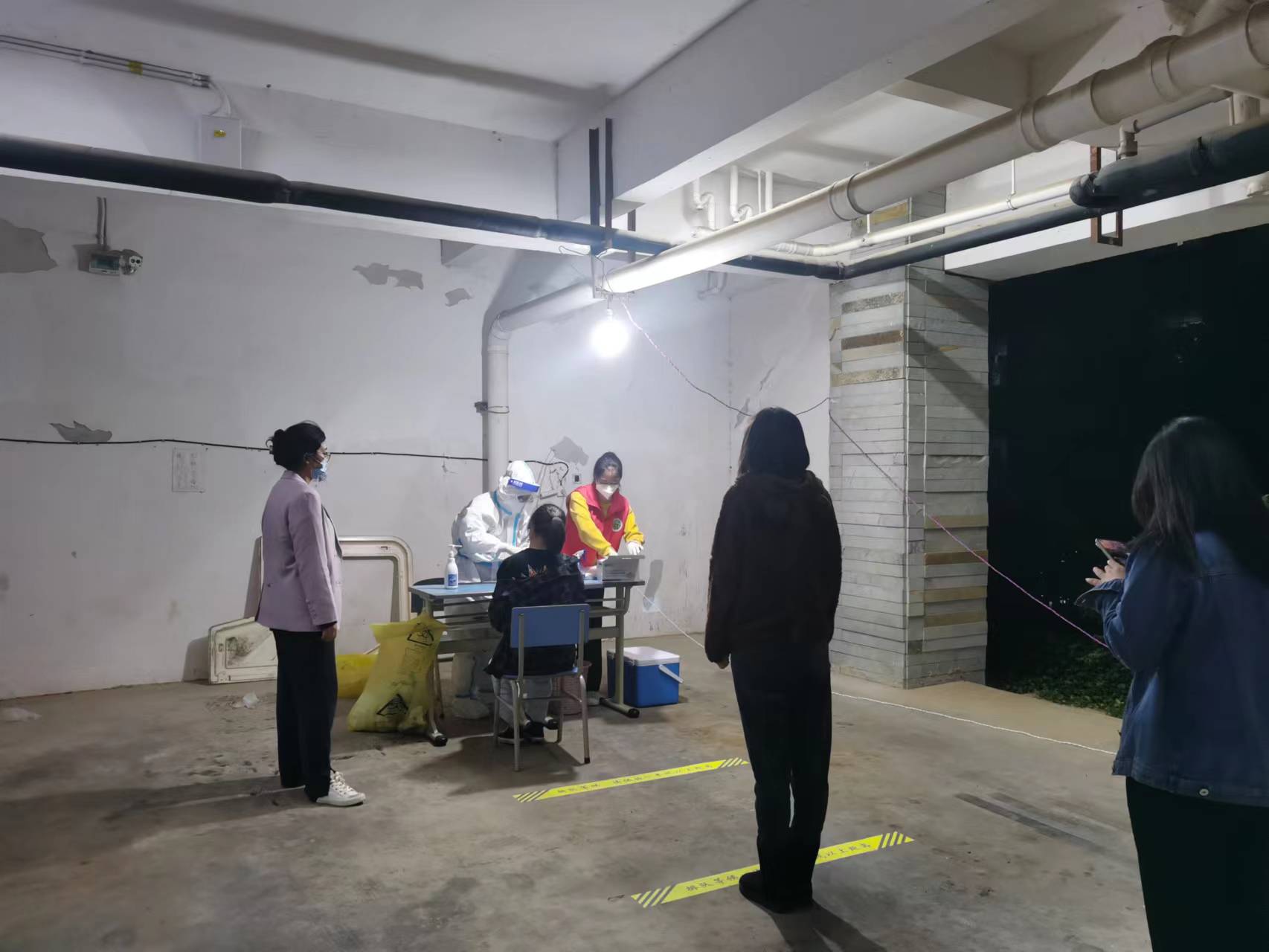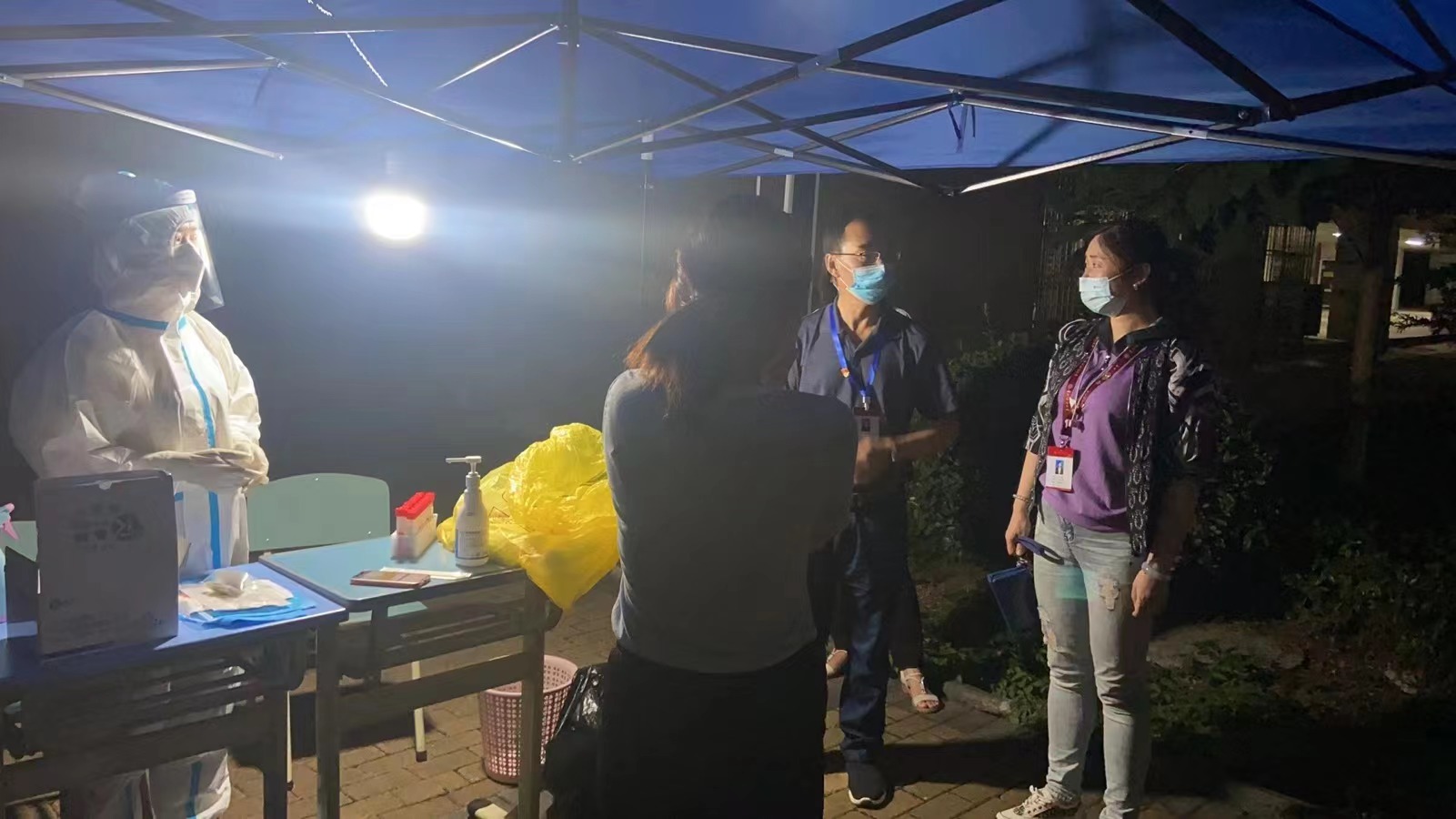 党委副书记黄忠莉则是在前一晚深夜开会后,仍然坚持守在同学们身边,协助核酸检测继续到第二天凌晨。