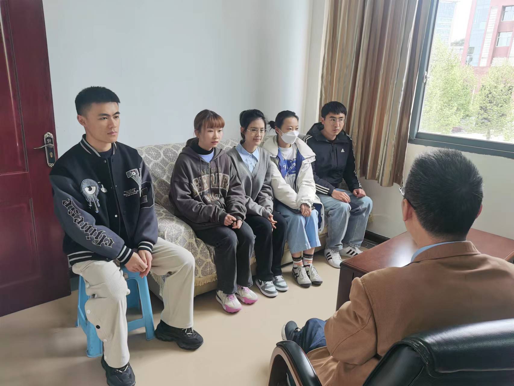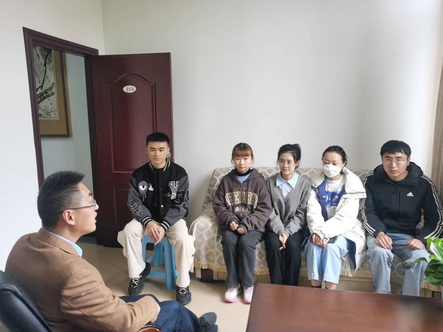 “最近学业情况如何?”“都参加了哪些学科竞赛?”“论文写的如何了?”“工作找的怎么样?”“选择考博这条路有没有什么困难?”……杜剑关切询问每一名员工的情况,并对员工在学业、工作等方面存在的疑惑进行了对症指导。