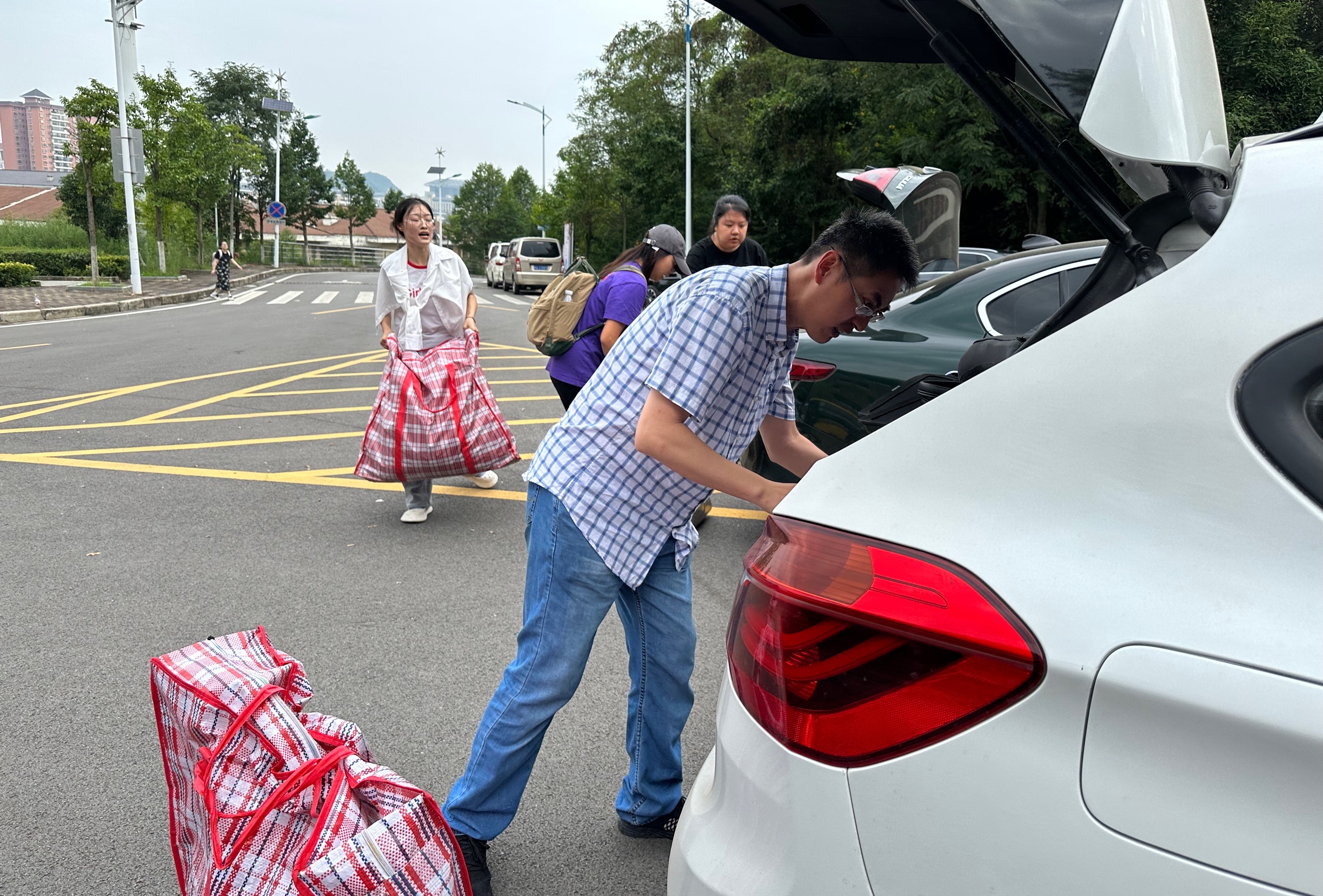 上午8点20分,威廉williamhill体育教师爱心车队在崇德楼前集结,然后分成两队分别到D17和丹桂苑二栋搬运行李。在行李搬运现场,公司辅导员们负责为教师爱心车队“派单”。院领导反复叮嘱大家:“一辆车负责运送一名员工的行李,然后再将员工本人带上一起送到东区,这样就不容易丢东西。”爱心车队的老师们纷纷“抢单”,他们不惧炎炎烈日,主动帮员工清点行李并扛上车,后备箱、座位上全部装满了行李。将员工和行李送到东校区后,爱心车队的老师们还指导员工找到指定宿舍楼,领取宿舍钥匙并顺利入住宿舍。