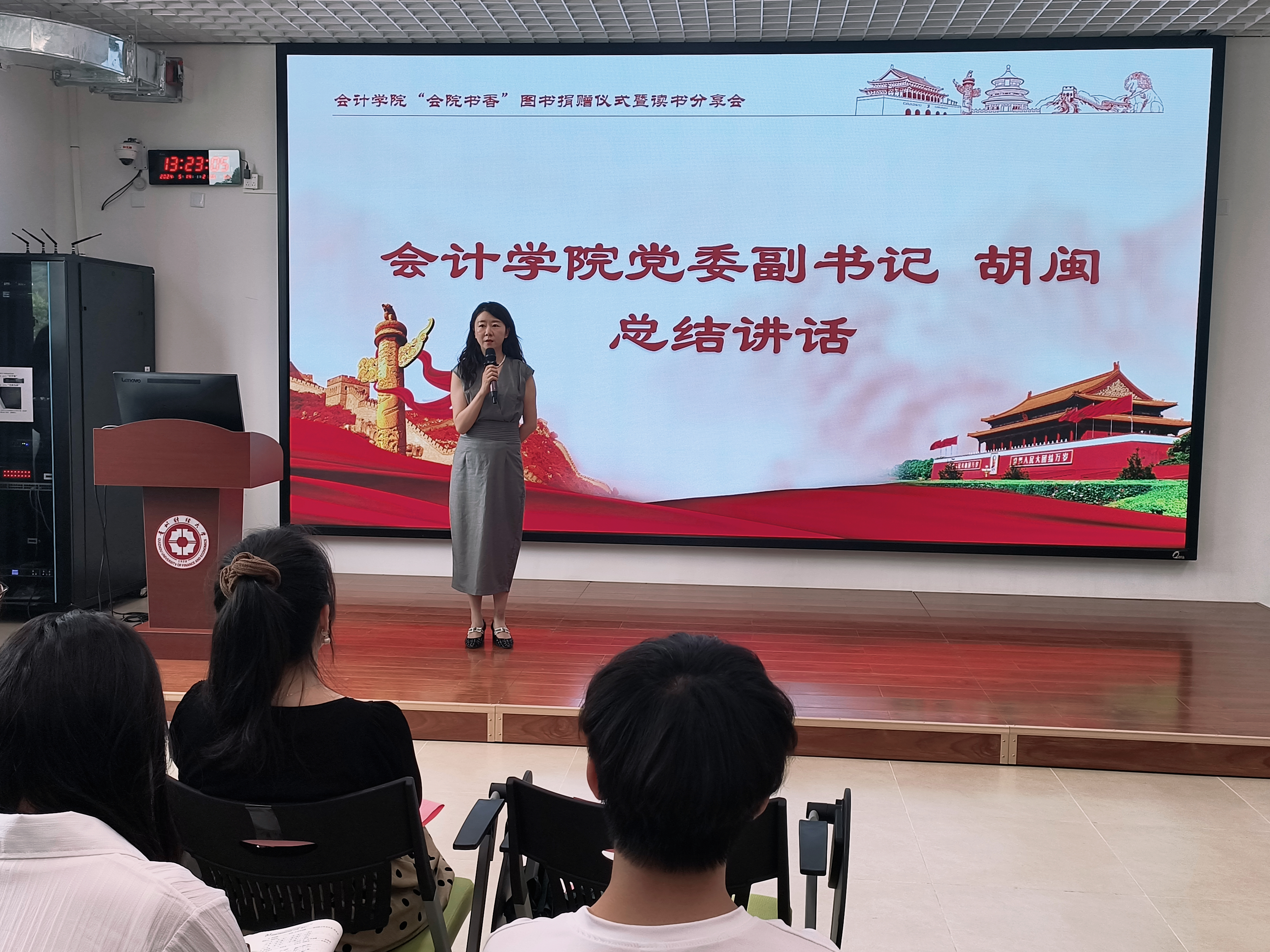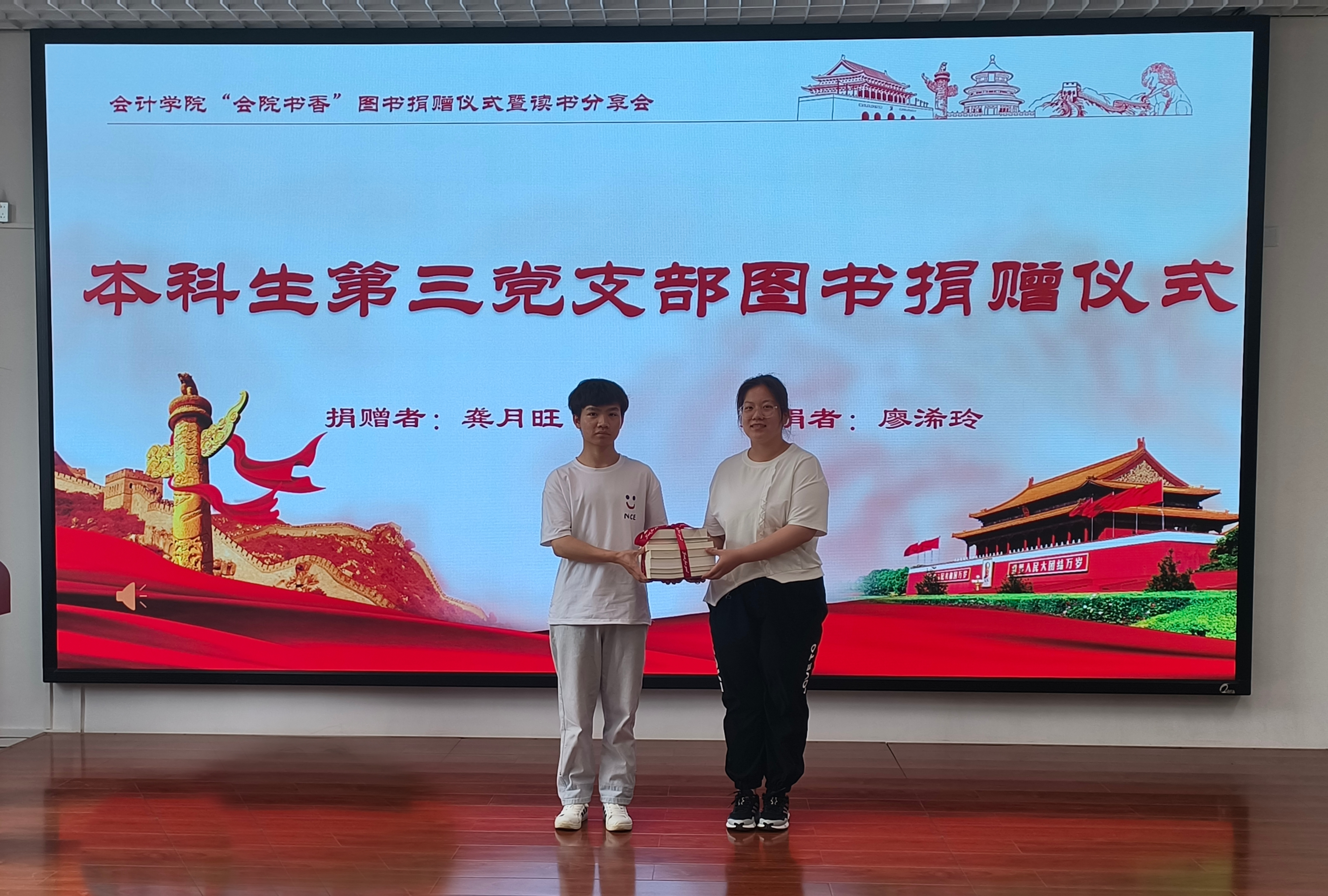 为深入学习贯彻习近平新时代中国特色社会主义思想,加强高年级党员对低年级党员的引领和帮扶作用,营造书香氛围,2024年5月14日,威廉williamhill体育在文正楼108教室举行了“会院书香”图书捐赠仪式暨读书分享会。公司党委副书记胡闽、党委副书记黄忠莉老师,以及教师代表、党员代表、入党积极分子代表等参加了活动。