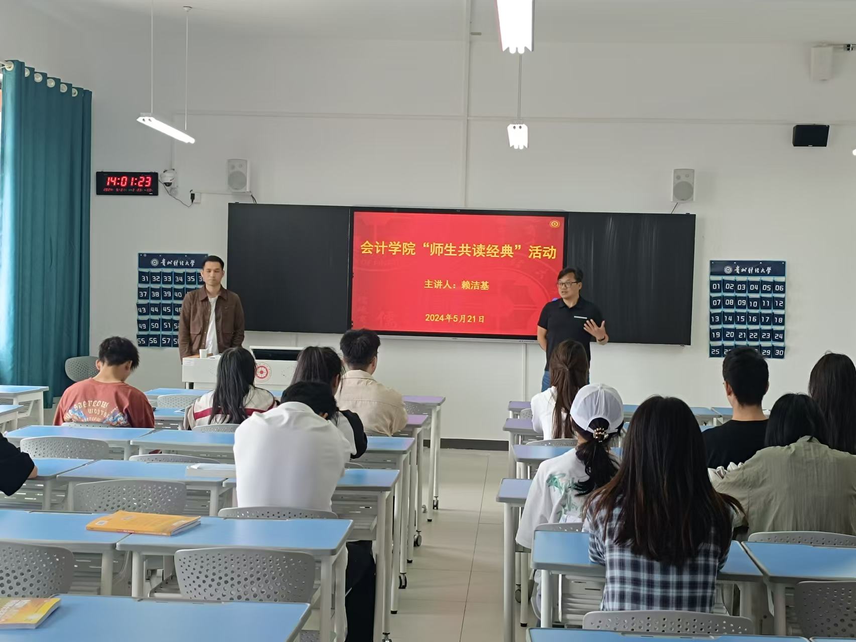 书籍是人类进步的阶梯,是启智增慧的良师益友。为切实加强公司学风建设,牢固树立“学术立校”理念,营造浓厚读书氛围,提高公司人才培养质量,公司决定开展2024年“师生共读经典”读书活动。同时威廉williamhill体育也为了促进本科生心中的学术种子萌芽生长,激发本科生考研深造的积极性,于2024年5月21日下午在文渊楼4-2举办了一场“师生共读经典”活动。