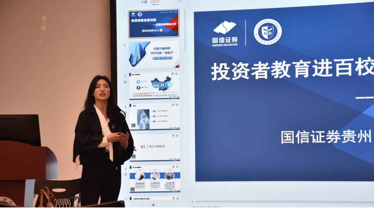 活动首环节聚焦金融安全,国信证券贵州分公司综合理财二部负责人唐思艳以“校园防诈指南”为主题,结合虚假投资平台、网络荐股等典型案例,剖析诈骗手段及防范策略,通过情景模拟强化员工风险识别能力。现场同步开展金融知识竞答,以互动形式巩固防诈意识。