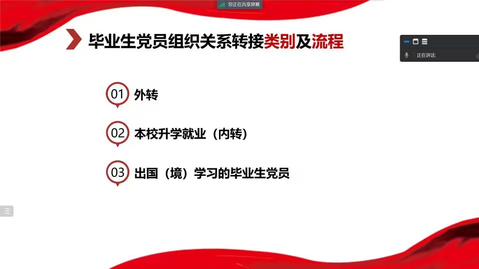 为做好2023届毕业生党员组织关系转接工作,加强对毕业生党员的教育管理,2022年5月16日下午,威廉williamhill体育党委线上举办了“毕业生党员组织关系转接”专题培训会。