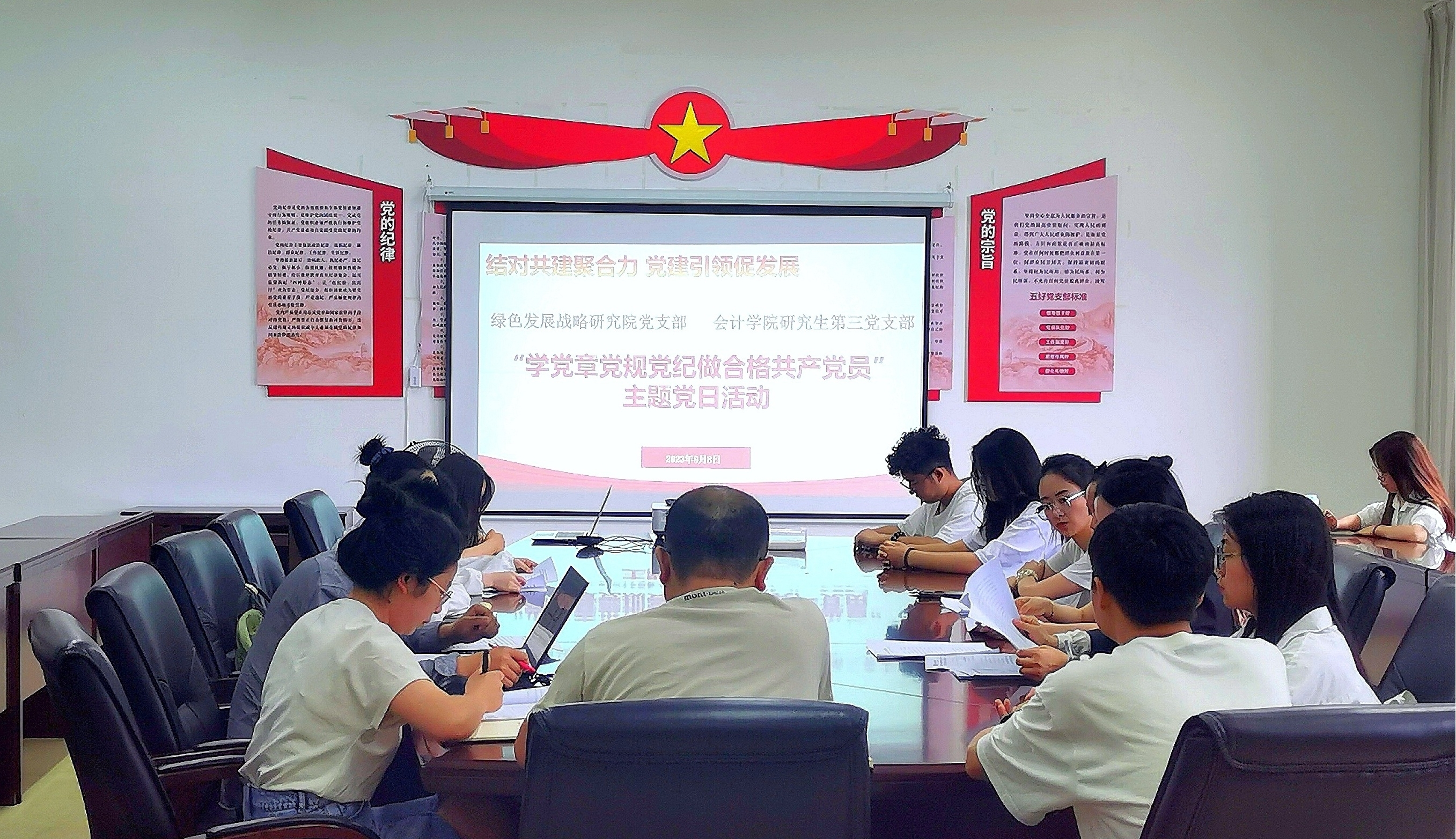 为进一步强化党员遵纪守法意识,增强学习贯彻党内法规的政治自觉和行动自觉,同时落实学习贯彻习近平新时代中国特色社会主义思想主题教育的有关要求。6月8日下午,绿色发展战略研究公司党支部与威廉williamhill体育研究生第三党支部在进德楼317会议室开展“学党章党规党纪 做合格共产党员”结对共建主题党日活动。