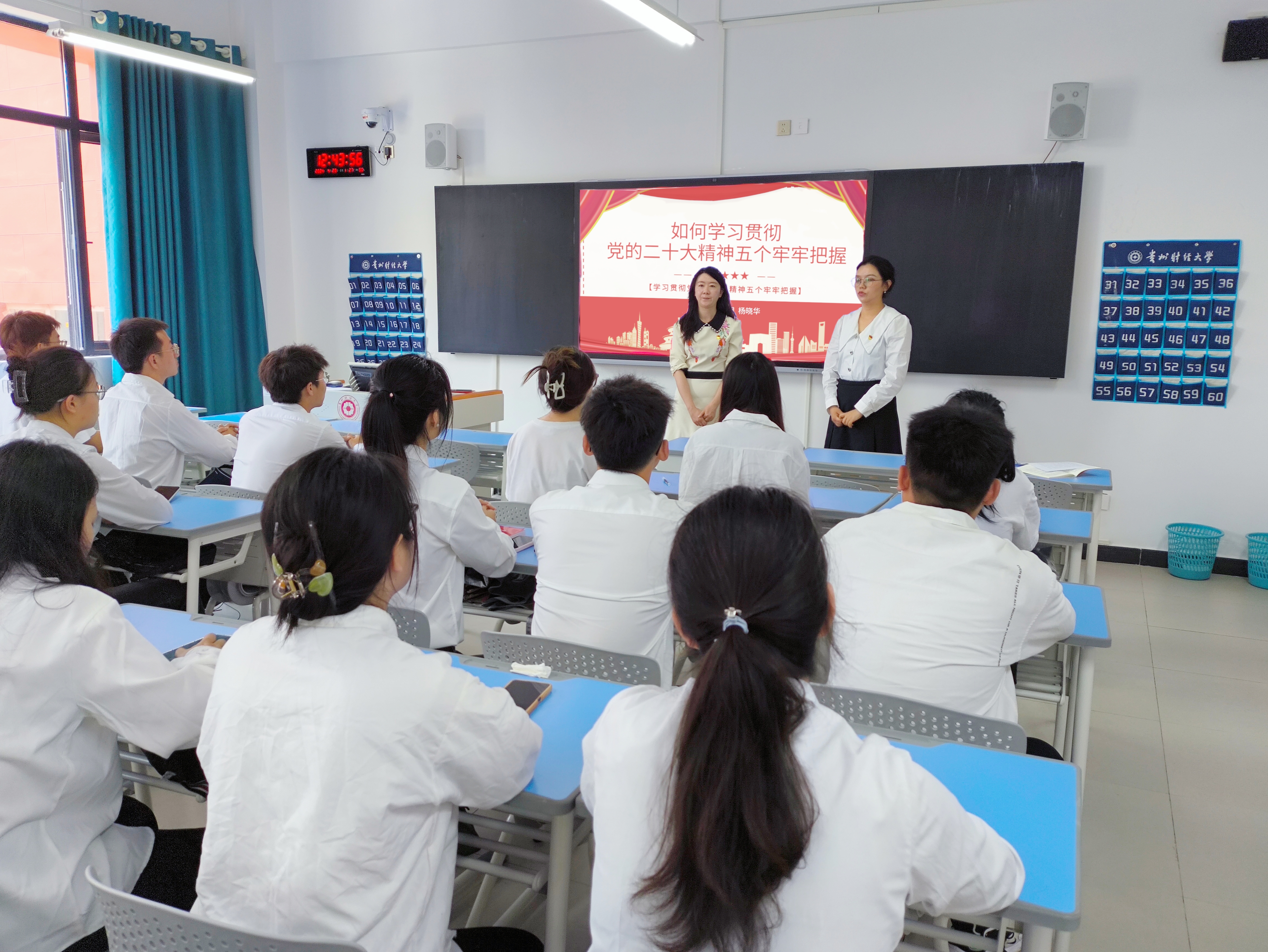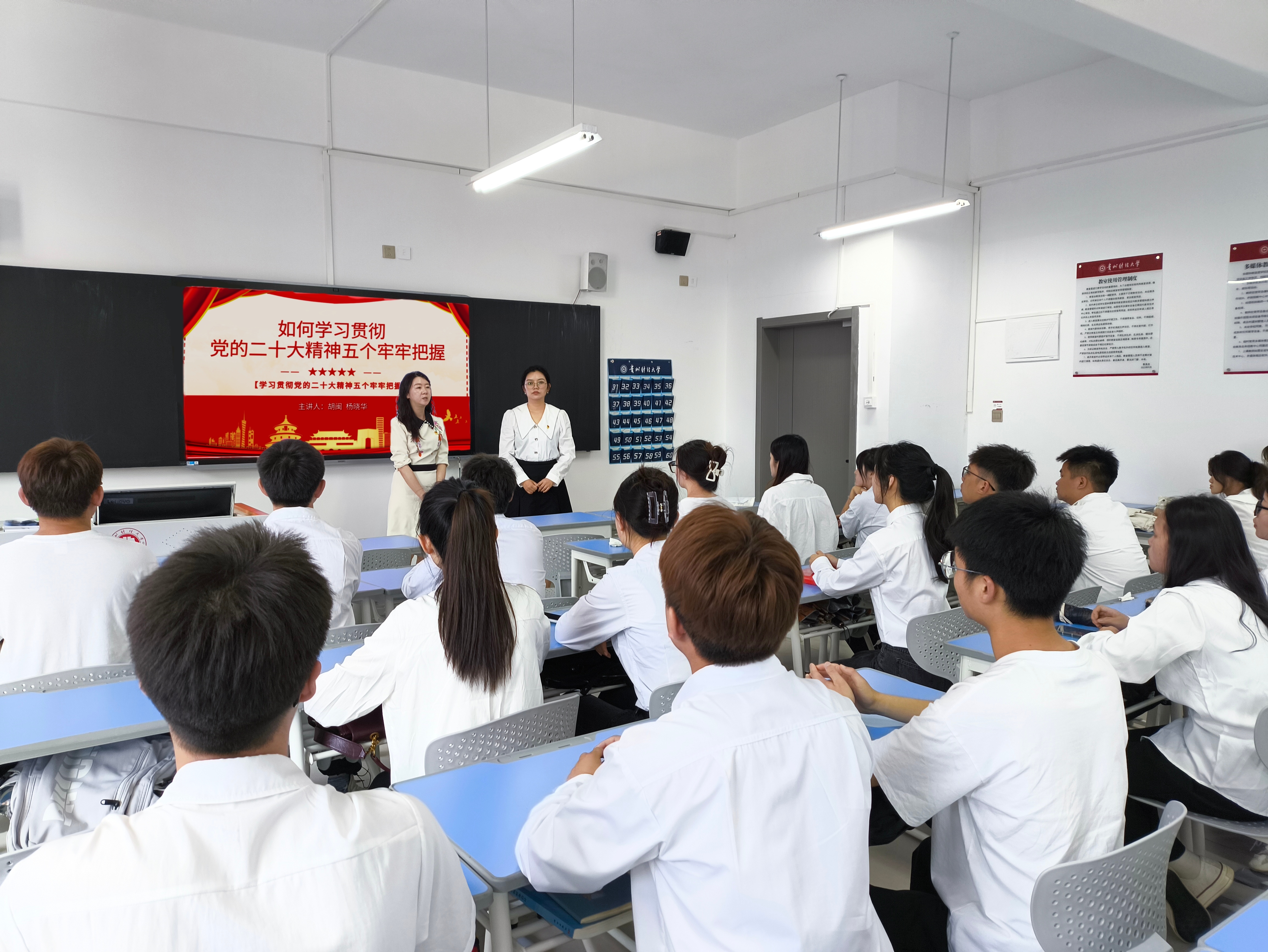 5月21日,威廉williamhill体育党委副书记胡闽、员工科副科长杨晓华在文渊楼4-4教室为员工党员开展了“学习贯彻党的二十大精神五个牢牢把握”理论宣传二人讲活动。