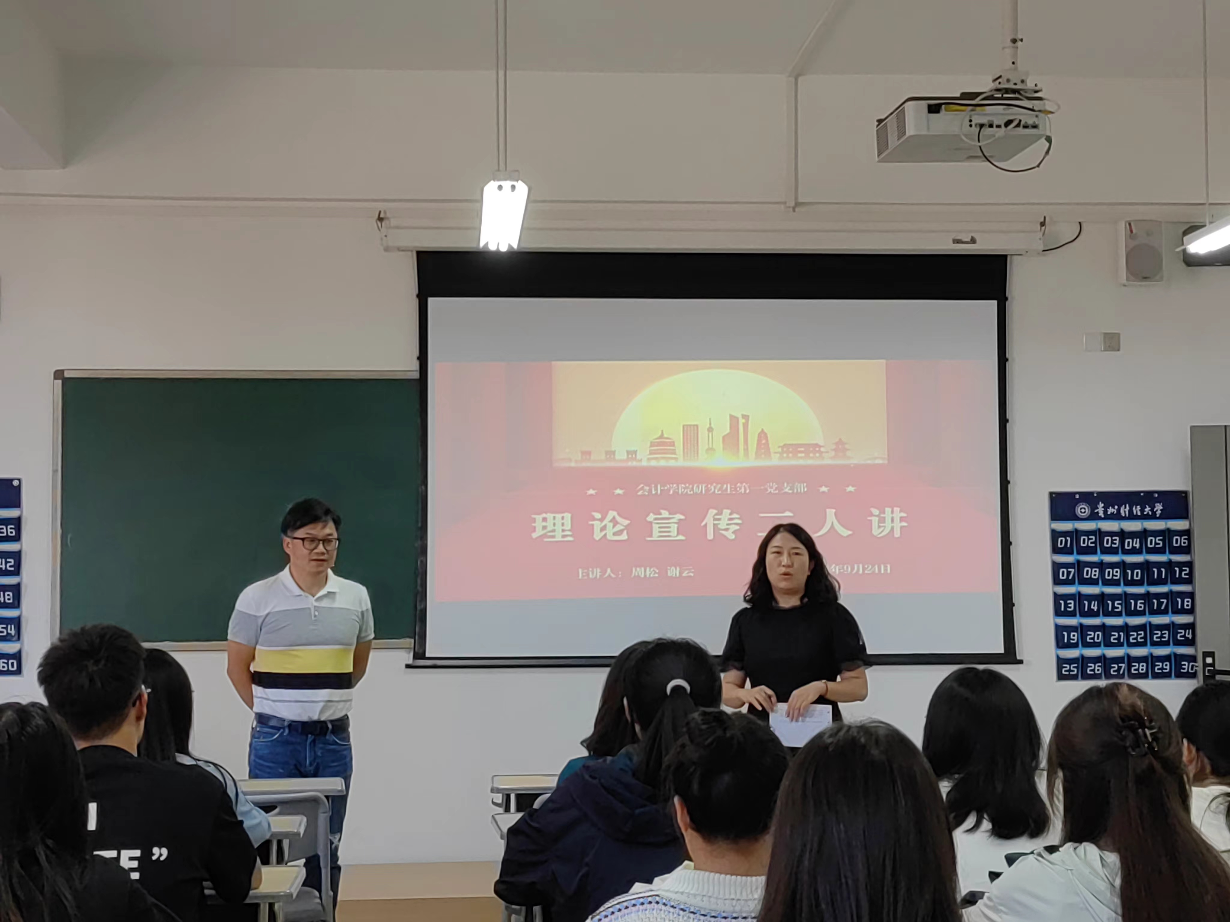 9月25日,威廉williamhill体育副经理周松、研究生辅导员谢云在文渊楼3-4教室为员工党员开展了“学习贯彻党的二十届三中全会精神”理论宣传二人讲活动。