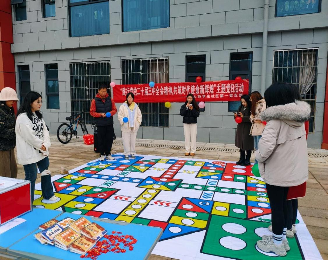 主题党日活动分为展板展示、猜谜活动以及飞行棋游戏三个环节。展板展示了社区支部党员的书法、绘画作品,以及经典语录的摘抄作品,向党表明了爱国爱党之情;猜谜活动、飞行棋游戏围绕党史、党的二十届三中全会等知识,不仅加深了社区支部党员对党的二十届三中全会精神的理解和认识,增强支部党员的学习积极性和主动性,提高党员的政治素养和理论水平,同时也增强了社区党组织的凝聚力和战斗力。通过创新的党员教育形式,整场活动既庄严肃立,又不失轻松惬意,支部党员们积极热情,现场气氛热烈。