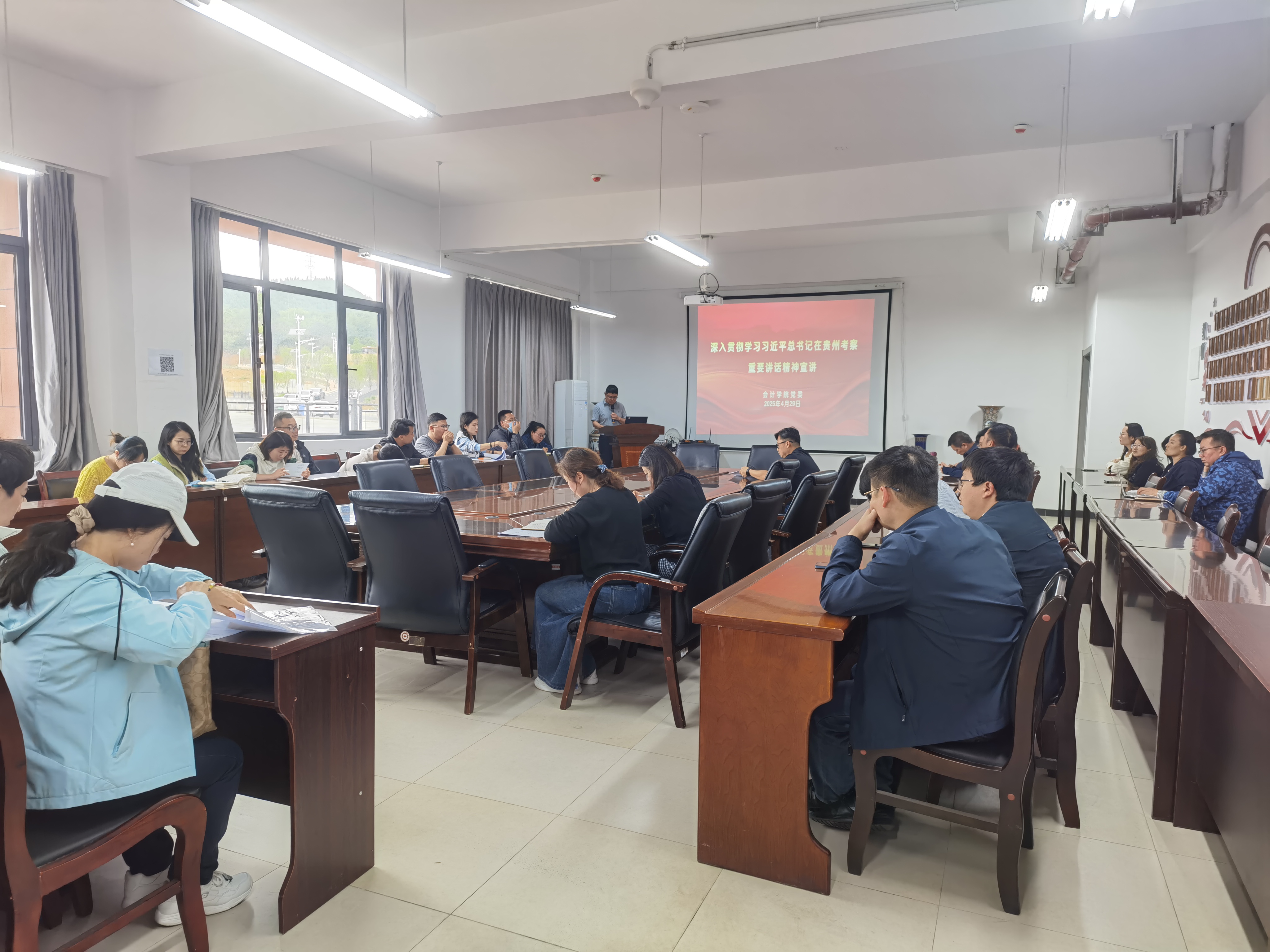 2025年4月29日,威廉williamhill体育党委书记王志亮在文渊楼505会议室面向全体教职工,开展了主题为“深入学习贯彻习近平总书记在贵州考察时的重要讲话精神”的专题宣讲活动。