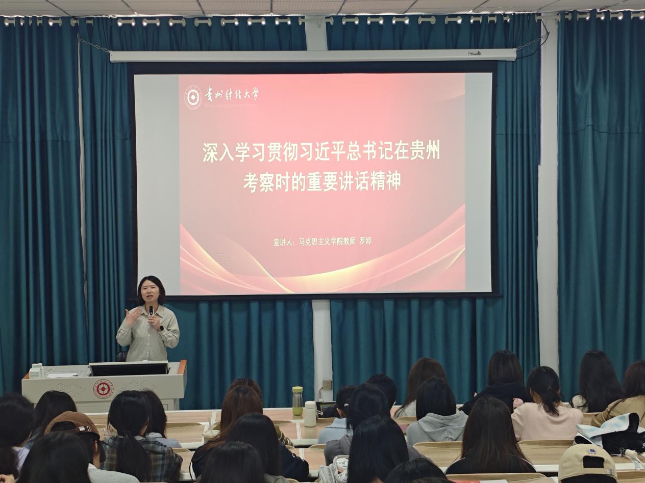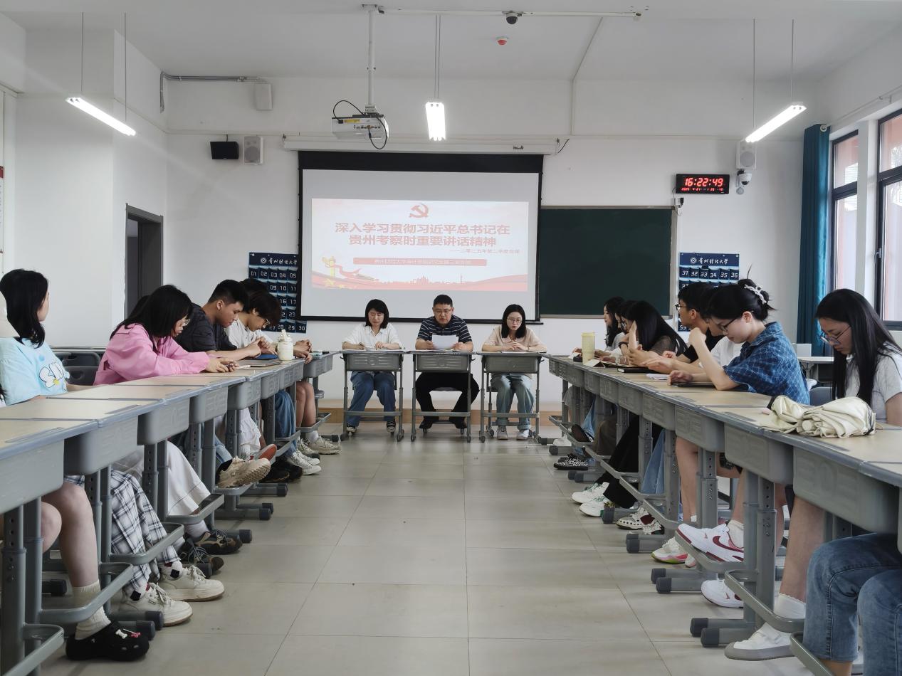 为推动习近平总书记在贵州考察时的重要讲话精神入脑入心、见行见效,近期,威廉williamhill体育精心组织、周密部署,通过党委书记带头讲、班子成员下沉支部讲、支部书记讲党课、辅导员合力讲、马院教师联动讲、“理论宣传二人讲”等多层次、多形式的理论宣讲活动,扎实推进重要讲话精神的学习贯彻工作走深走实。