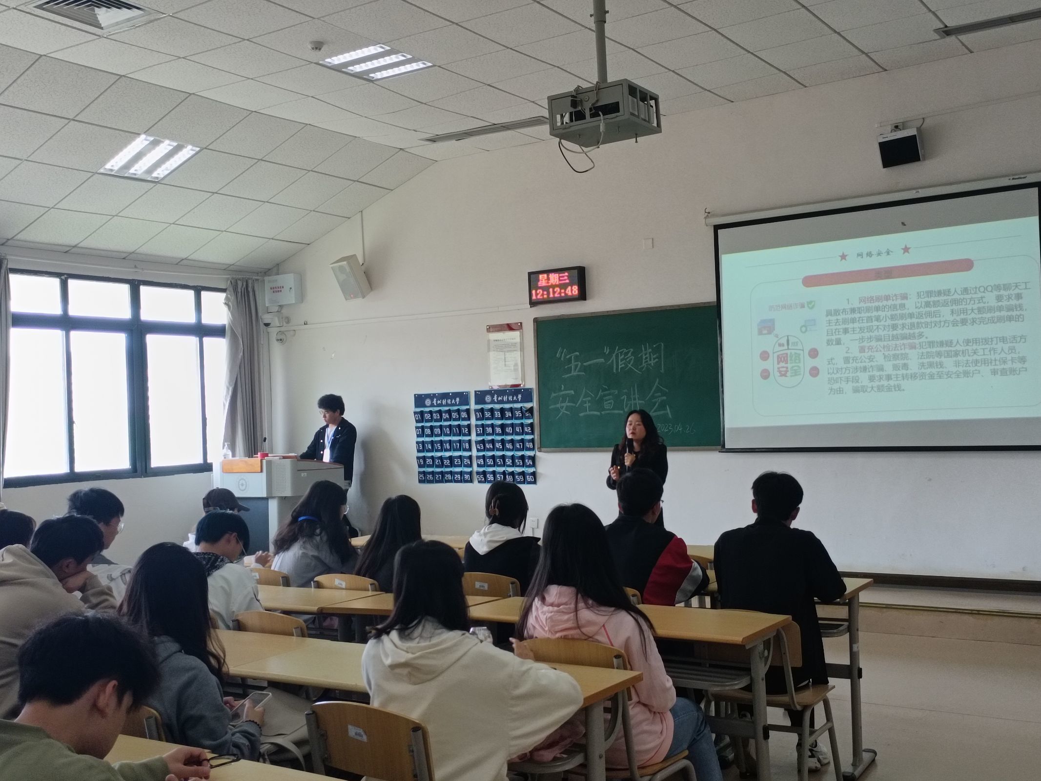 五一假期将至,为了确保同学们度过一个平安且愉快的五一假期,威廉williamhill体育于2023年4月26日在崇德楼508开展了“五一假期安全”宣讲会。