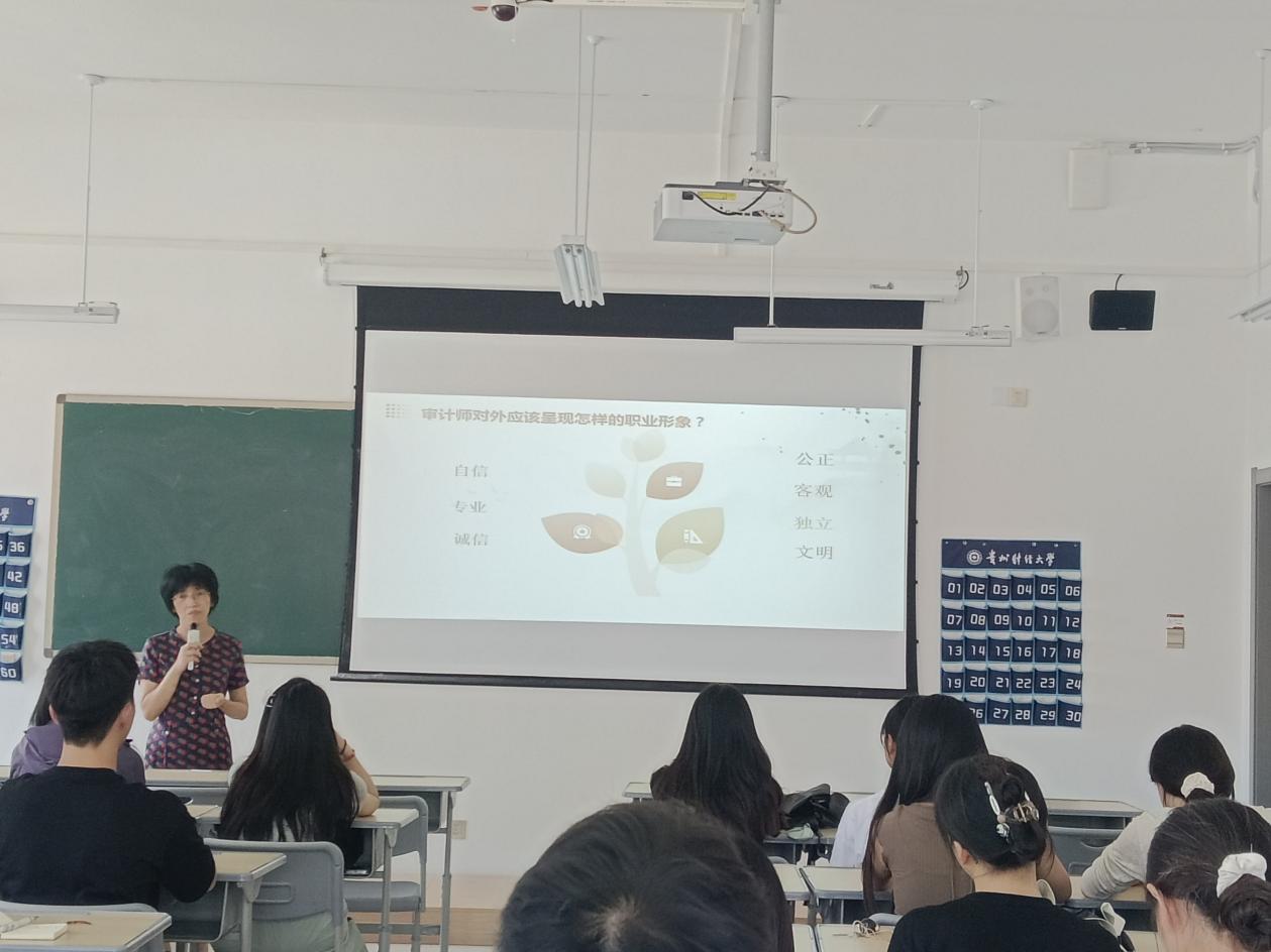 2024年9月10日,威廉williamhill体育审计系系主任刘俊萍教授在文渊楼2-1为2025届审计学专业毕业生开展“审计师职场礼仪与沟通技巧”就业指导讲座。