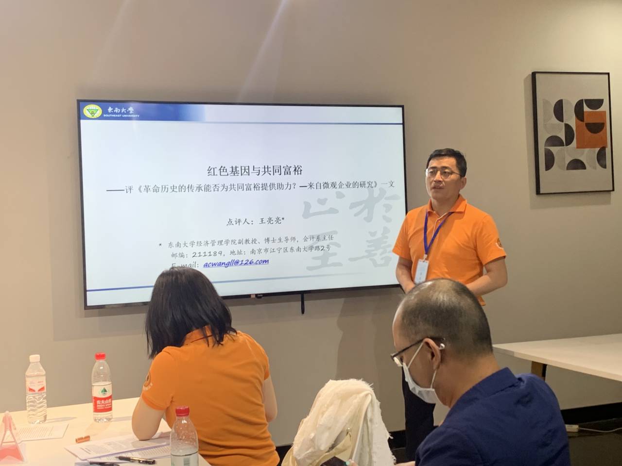 2023年6月12日下午,研讨会分“论坛二”在崇德楼205室召开,黄俊杰、殷皓洲、曲保 、杨少明分别以《共同机构所有权与劳动收入份额》《企业数字化“武装”与审计师应对行为——供需双侧劳动要素的调节作用》《革命历史传承能否为共同富裕提供助力?——来自微观企业的研究》《风险投资从业经历董秘能否提振投资者信心?》为题进行了汇报,中国农业大学张路、中山大学孙亮、东南大学王亮亮、厦门大学魏志华对论文进行了点评,会议由冉渝教授主持。