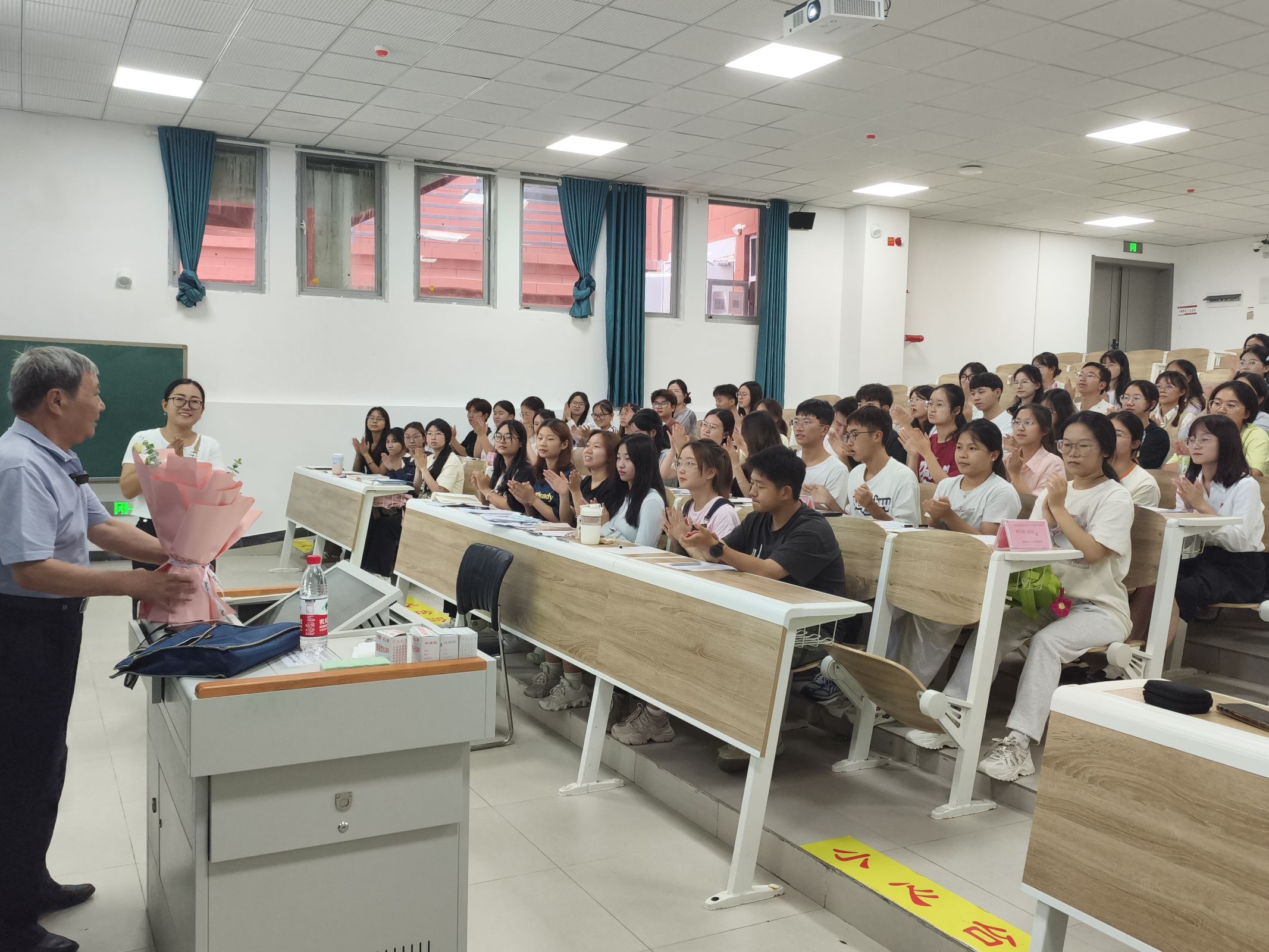党课结束后,学员代表上台向秦立俊老师送上了鲜花,表达了对秦老师克服身体不适坚持为员工讲党课的感激之情,也向秦老师送上了教师节的感谢祝语。全体学员也与秦老师进行了合影留念。