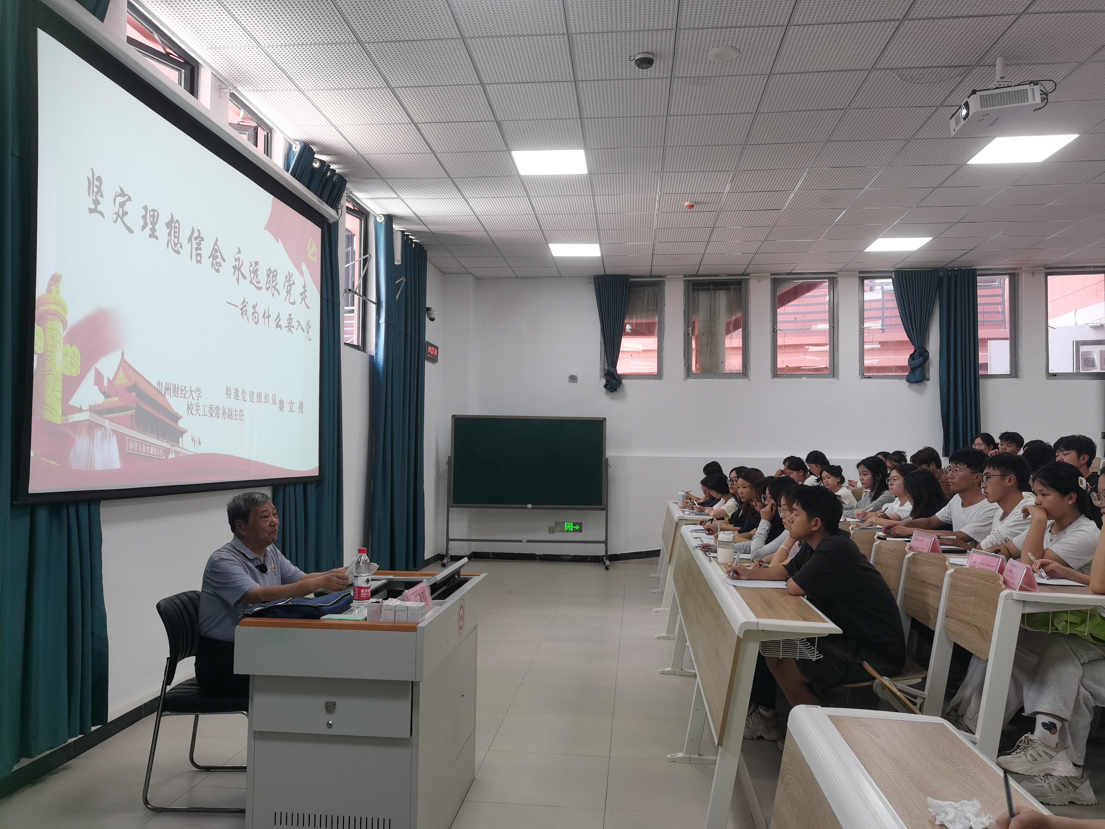 9月10日,在第40个教师节这个特殊的日子里,受威廉williamhill体育党委邀请,校特邀党建组织员、关工委常务副主任秦立俊同志到威廉williamhill体育为70名入党积极分子学员上了题为《坚定理想信念,永远跟党走》的专题党课。
