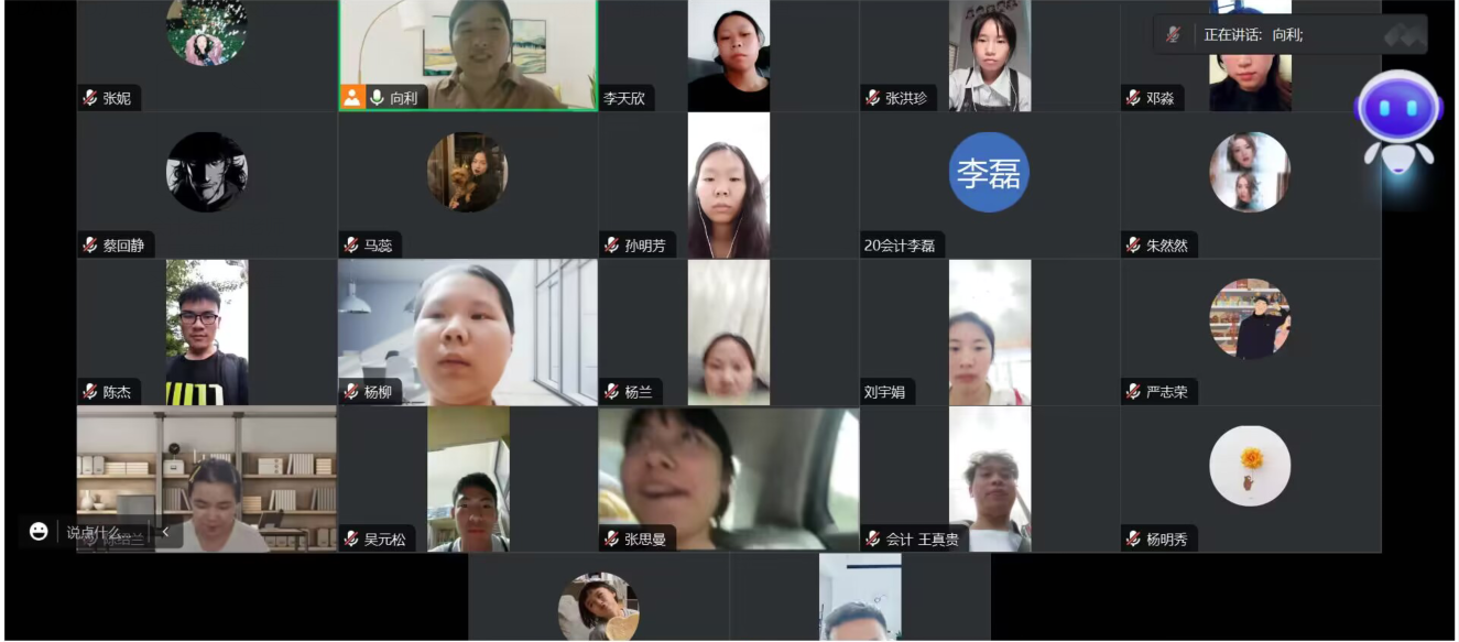 2023年7月31日晚上,会计系向利老师通过腾讯会议对威廉williamhill体育23名员工开展了暑期专业实习线上教学巡查。