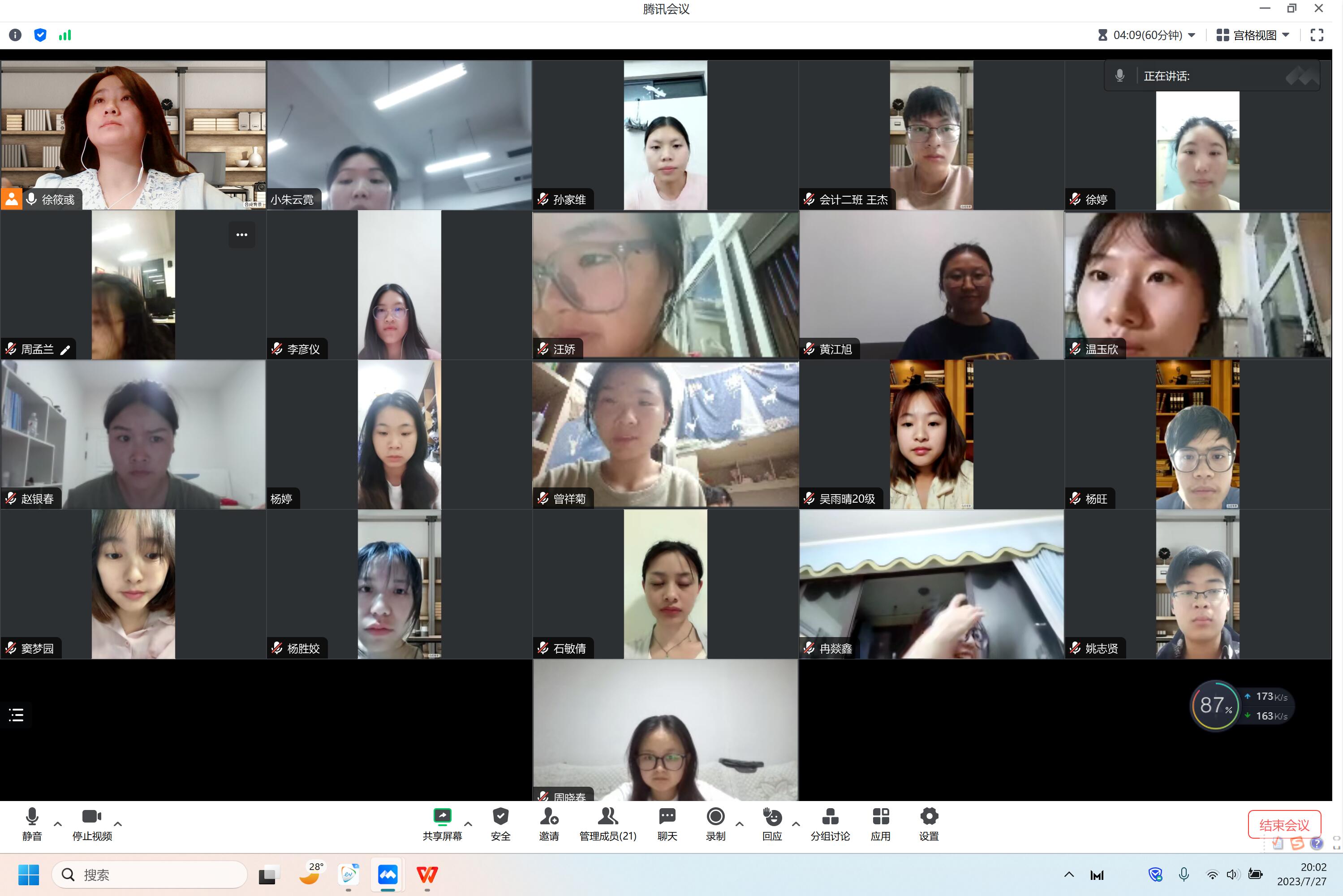 7 月 27 日下午,会计系徐筱彧老师通过腾讯会议开展暑期专业实习线上教学巡查。