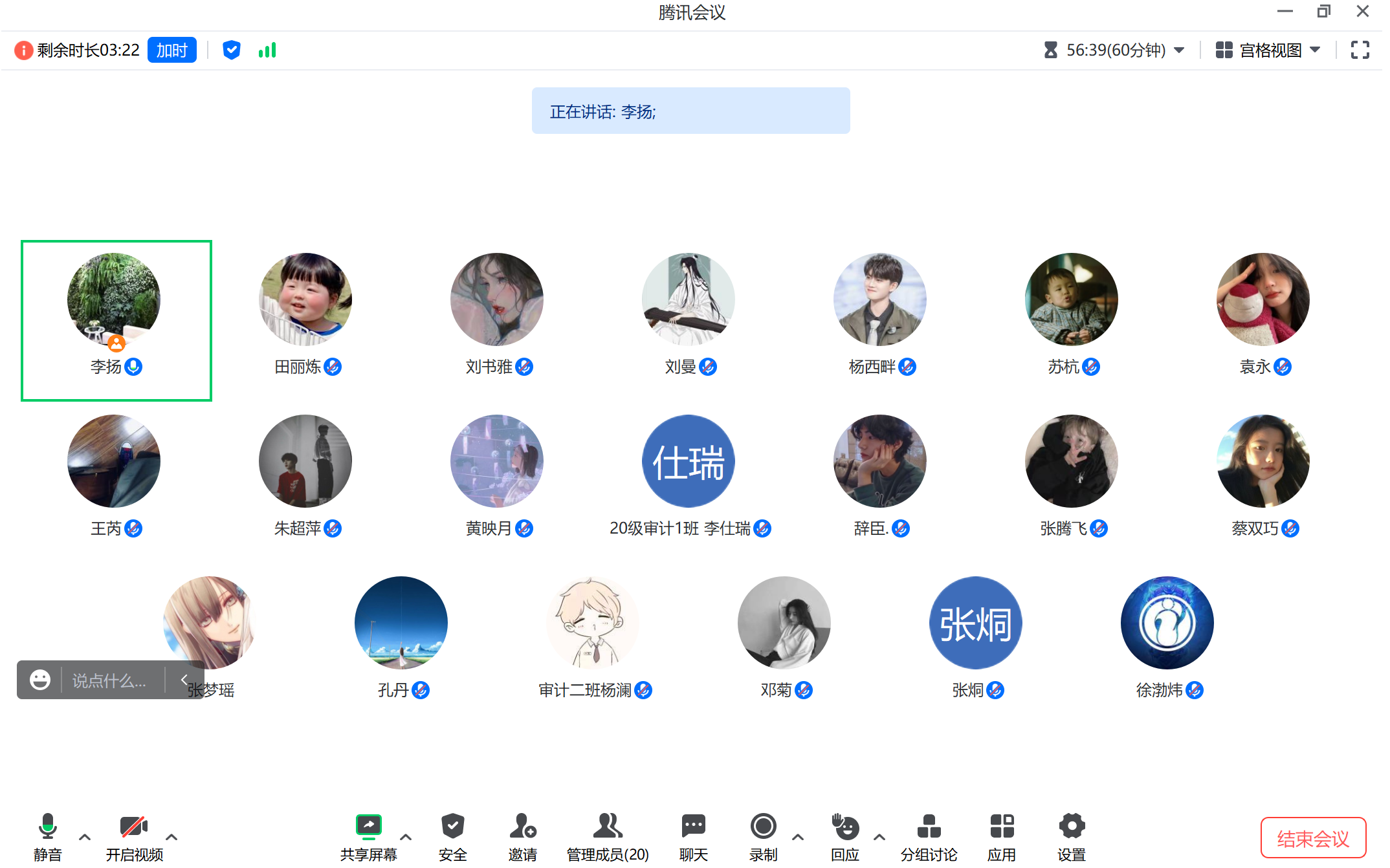 7月22日下午,审计系李扬老师通过腾讯会议开展了暑期专业实习第三周的线上教学巡查。