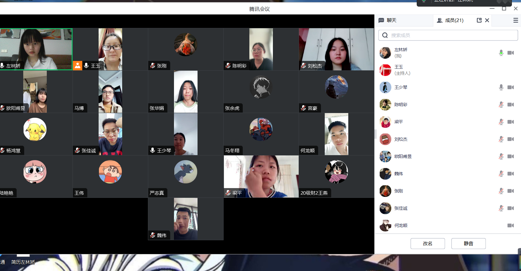 7月21号下午,财务管理系王玉老师,针对于2020 级会计专业员工实习情况,借助腾讯会议开展了暑期专业实习线上教学巡查。