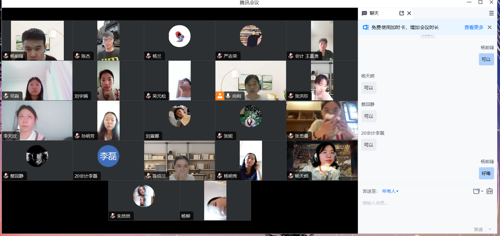 2023年7月16日晚上,会计系向利老师通过腾讯会议对威廉williamhill体育23名员工开展了暑期专业实习线上教学巡查。