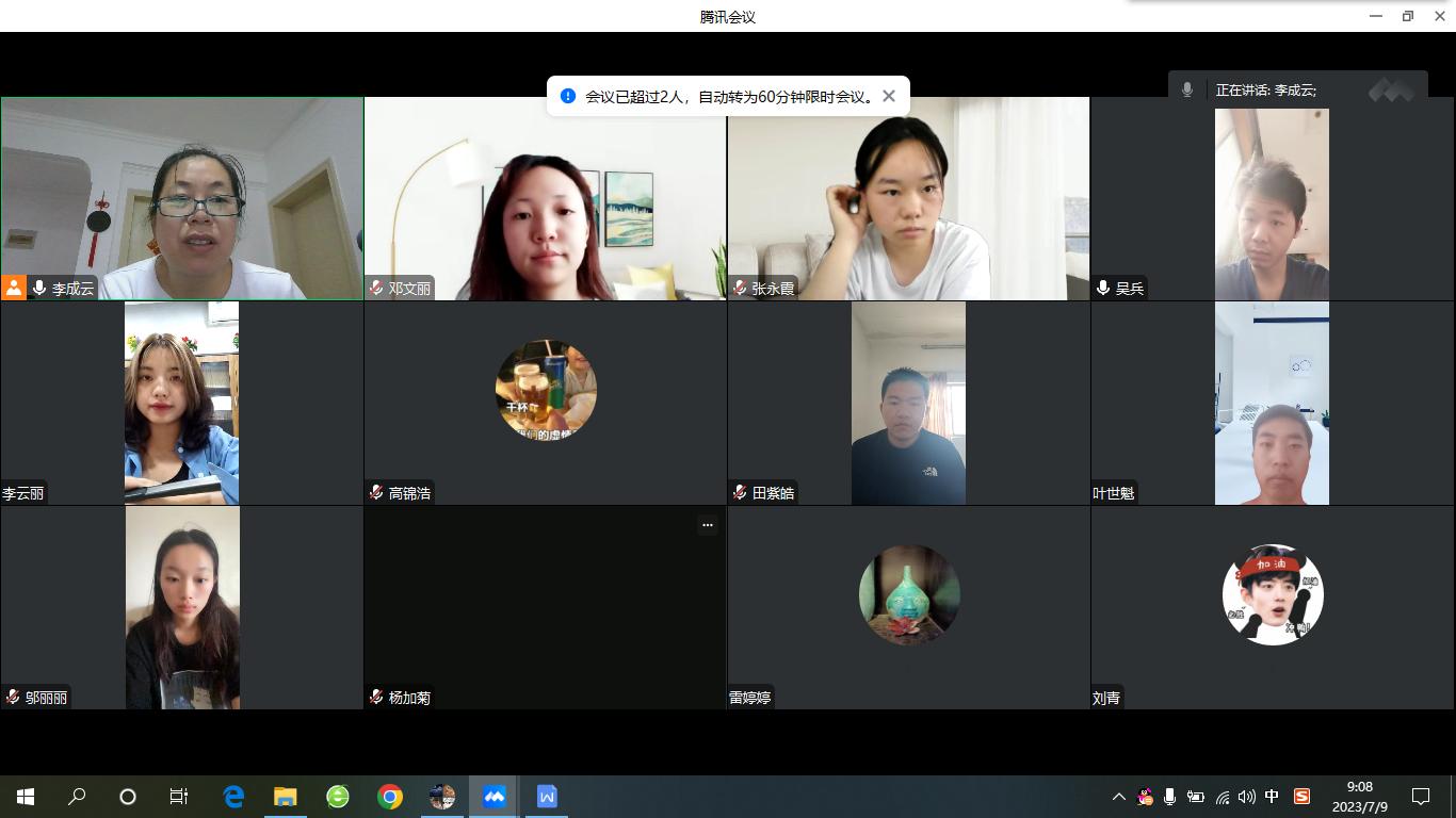 7月9日上午,威廉williamhill体育李成云老师通过腾讯会议开展暑期专业实习线上巡查。